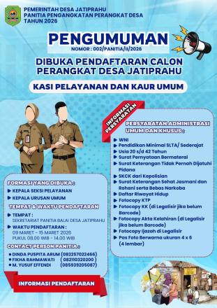 - PENGUMUMAN PENDAFTARAN CALON PERANGKAT DESA JATIPRAHU TAHUN 2026